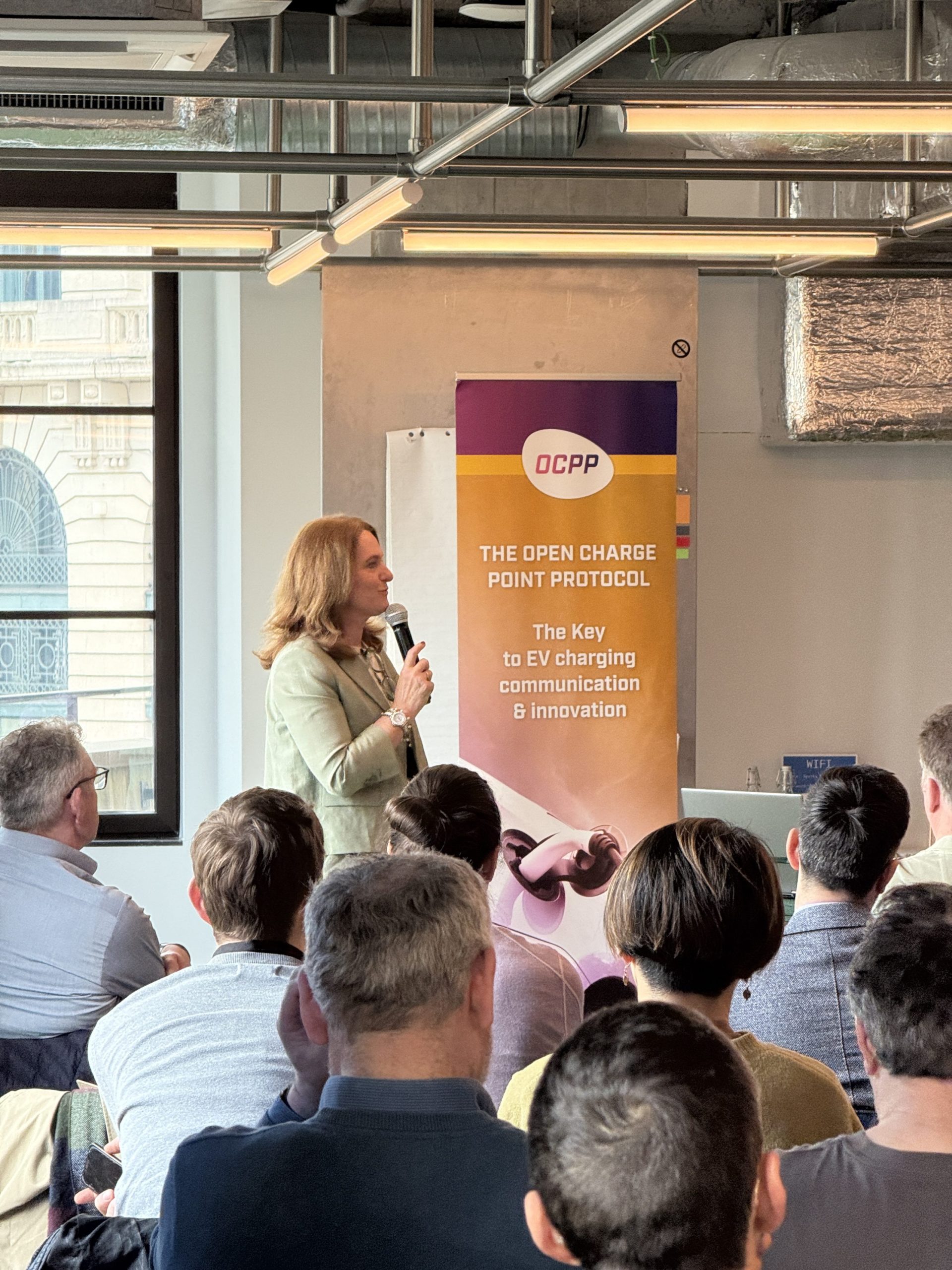The day began with networking over coffee, followed by an opening from Glenn Cezanne and a keynote by Lonneke Driessen. Together, they highlighted the growing importance of cybersecurity, the role of OCPP, and the need for strategic control within Europe’s charging infrastructure.