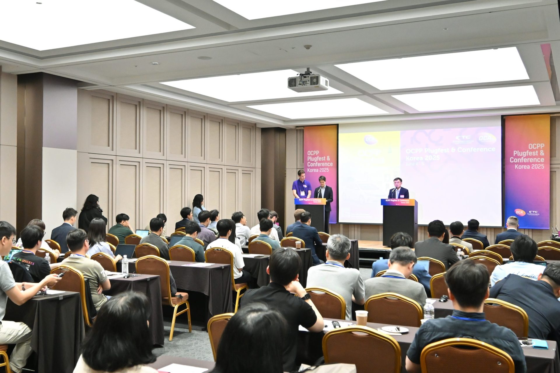 High-quality testing, expert presentations and a Korean palace. We brought together the Korean (and global) OCPP community during this OCPP Plugfest & Conference edition in Korea! On June 4 and 5 2025, we welcomed professionals with different backgrounds and experiences in the EV charging ecosystem to this OCA event in Seoul. Our participants built meaningful connections and attended high-quality testing sessions for their OCPP implementations. In addition to the testing sessions, the conference program offered insightful presentations by OCA team members and by industry experts from NMi, KTC, KATS, CEC, KERI and TARDIS. The event was hosted by KTC, the Korean Testing Certification Institute, which is one of the OCA-designated test labs for OCPP certification.