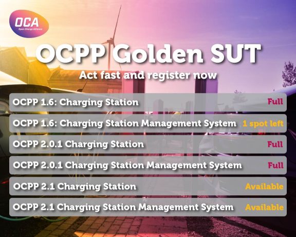 The Open Charge Alliance (OCA) is pleased to announce a second round of applications for the OCPP Golden SUT program.